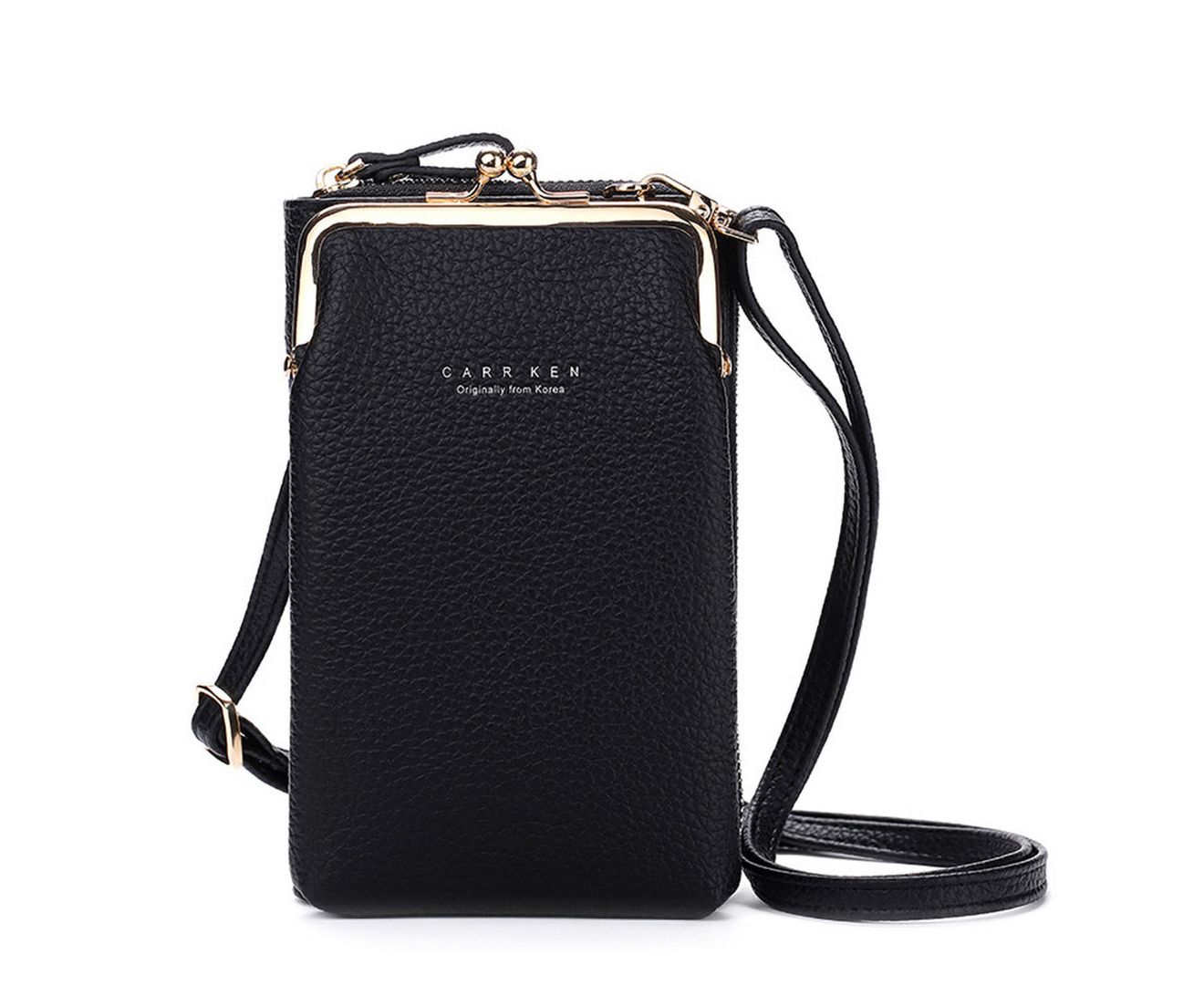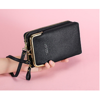 Women Large Capacity Mobile Wallet Phone Bag with Shoulder Strap-Black