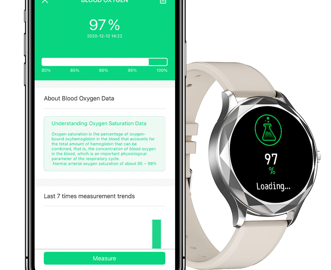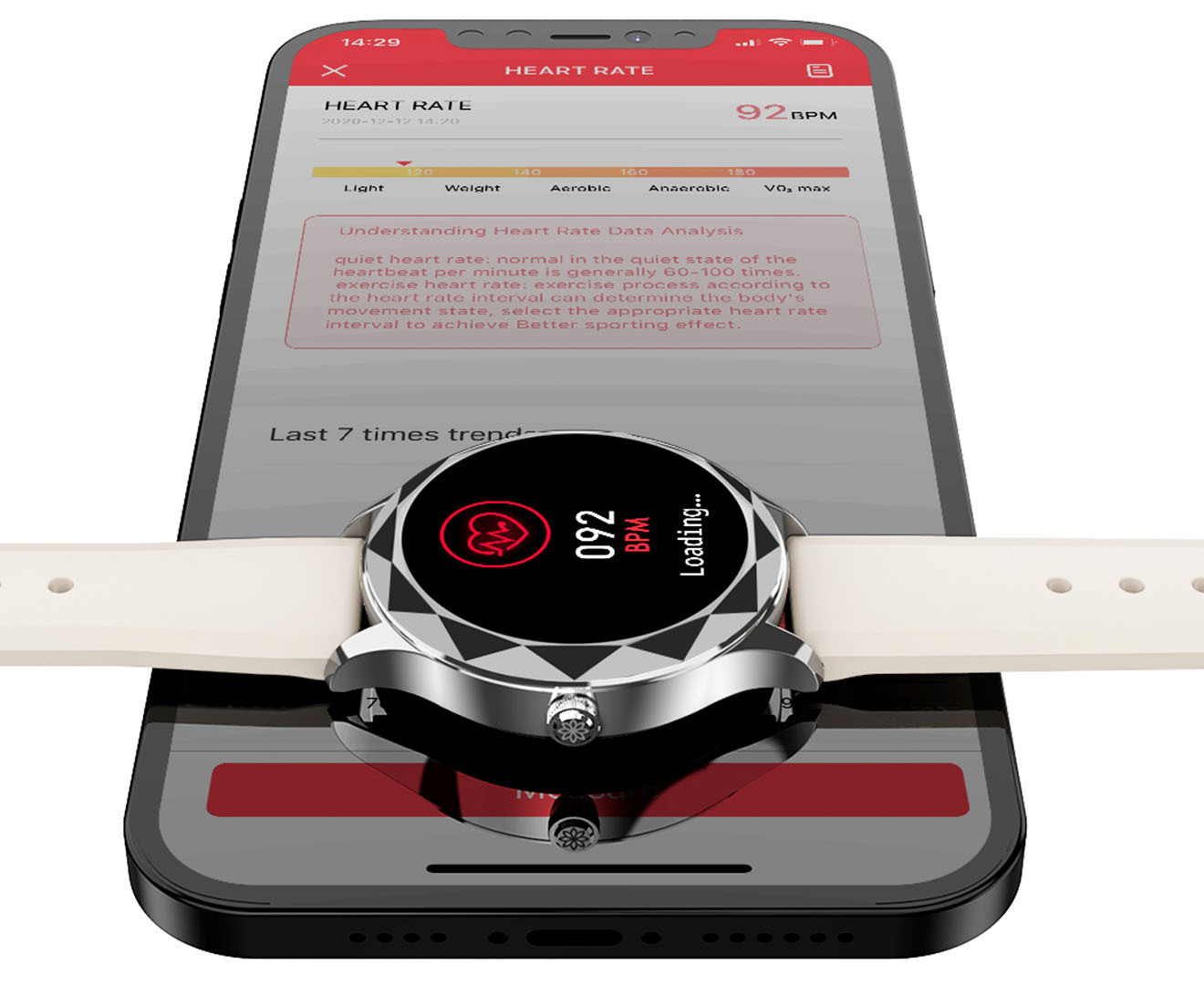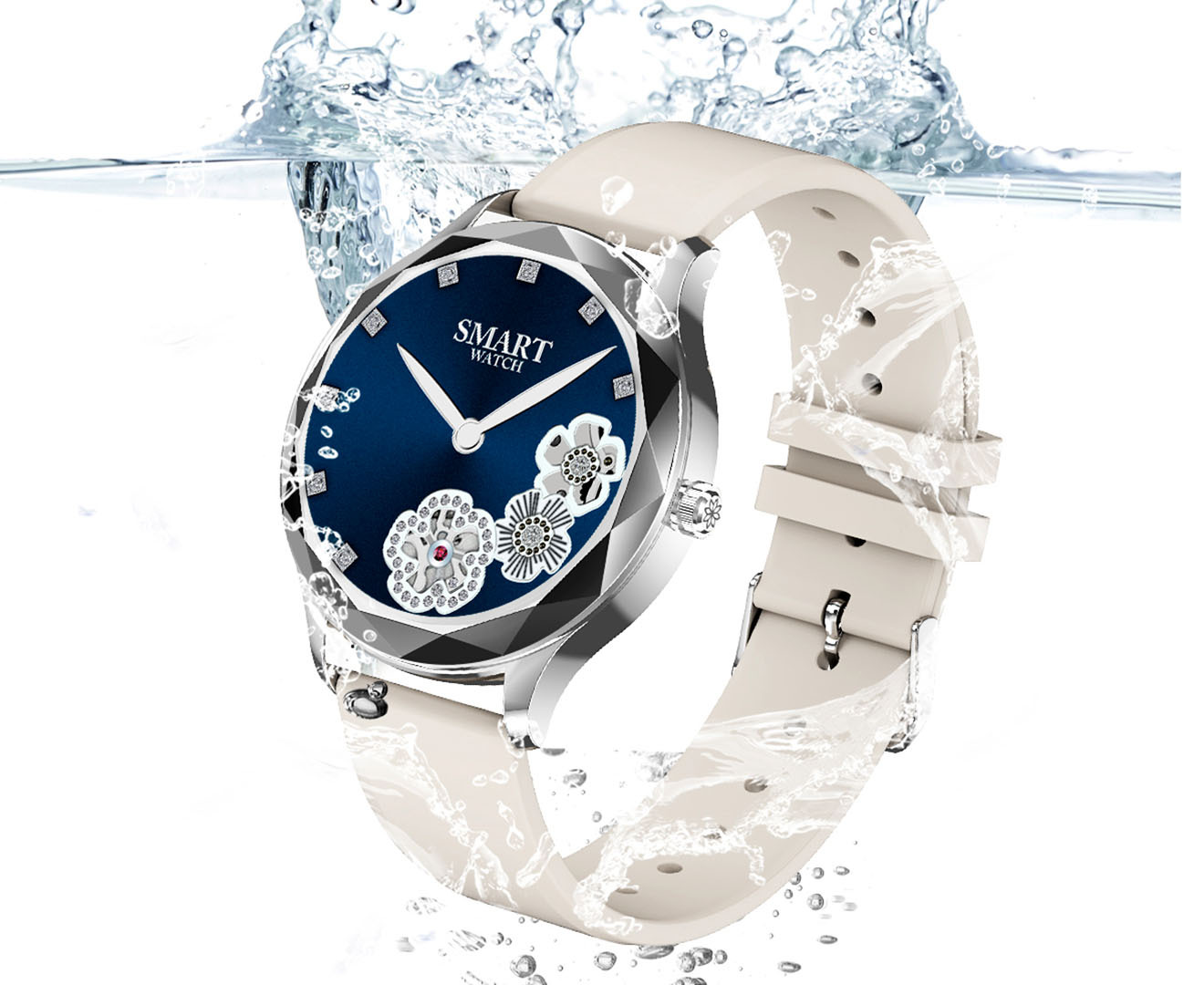 This luxurious and stylish smart watch designed for women has heart rate, blood pressure, sleep monitoring, Female physiological period management and waterproof function.